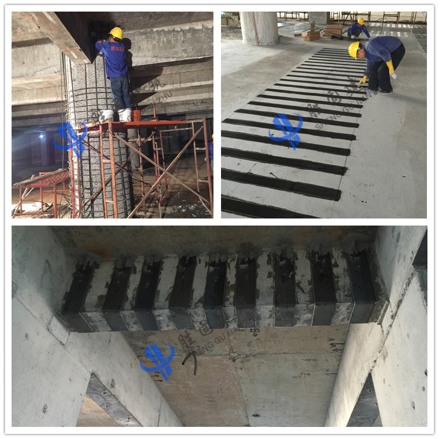【概要描述】工程簡介:新怡智逸大廈,位于廣東省佛山市南海大瀝,原設計為二十二層框架剪力墻結構體系建筑,作為辦公樓使用,施工至十五層時擬改變建筑使用功能,擬改變?yōu)榫频晔焦ⅲ词┕菍有柚匦鲁鼍呓Y構施工圖,已施工樓層使用荷載改變,需對承載力不足構件進行加固補強處理,該項目涉及加固構件有剪力墻、連梁、框架柱、框架梁、樓板,涉及加固方法有加大截面法、外粘型鋼法、粘貼鋼板法,粘貼碳纖維法。