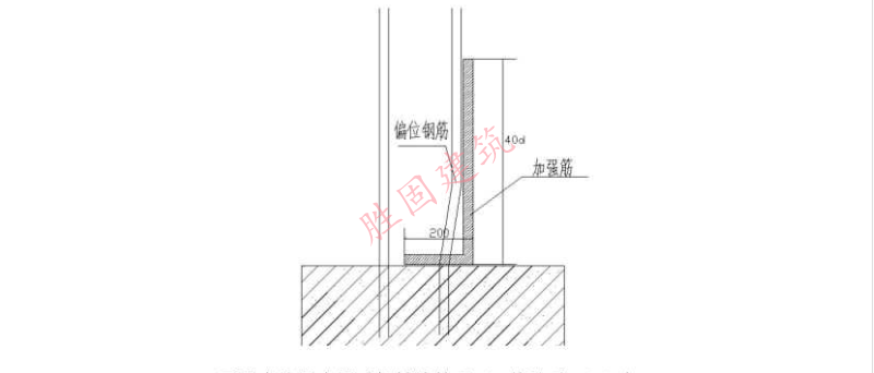 如采用電渣壓力焊或機械連接,位移鋼筋按1:6校正后在其鋼筋設計位置加相同直徑拐筋與主筋搭接,拐筋長度為40d+200mm;如下圖: